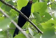 噪鹃是鹃形目杜鹃科噪鹃属鸟类,又名栽秧雀、哥好雀。雄鸟通体乌黑泛幽蓝色金属光泽,下体泛蓝绿色;虹膜血红色,啄淡土黄色,基部较暗,脚蓝灰色。雌鸟上体、翼和尾为深褐色,…全部>>