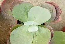 唐印为景天科伽蓝菜属的多年生肉质草本植物。植株中型,株高50厘米,宽20厘米,多分枝;叶片肉质,对生,卵形,全缘,先端钝圆,叶片淡绿色至灰绿色,表面被有厚厚的白粉,光照充足时,叶缘呈红色;圆锥花序,…全部>>