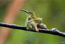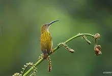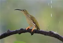 纹背捕蛛鸟:为太阳鸟科捕蛛鸟属的鸟类。是太阳鸟科中体型较大的一种,体重25-45克,体长160-210毫米。嘴粗长而尖且向下弯曲。上体橄榄黄色具黑色中央斑纹。下体淡黄白色满布黑色纵纹,尾具黑色次端斑。…全部>>