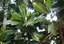 面包树 Fosberg)是桑科波罗蜜属植物。叶大,成熟之叶羽状分裂,表面深绿色,背面浅绿色;穗状花序单生叶腋,雄花序长圆筒形至长椭圆形或棒状;聚花果倒卵圆形或近球形;花期为3~5月,果期为7~10月。…全部>>
