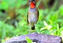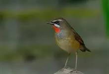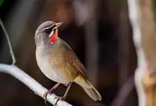 红点颏:是鸟纲、鹟科的鸣禽。又名西伯利亚歌鸲。体长14-17厘米,体重16-27克。雄鸟头部、上体主要为橄榄褐色。眉纹白色。颏部、喉部红色,周围有黑色狭纹。胸部灰色,腹部白色。雌鸟颏部、喉部不呈赤红色,…全部>>
