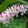 多花指甲兰是兰科、指甲兰属植物。茎粗壮,叶肉质。花序叶腋生,柄粗壮,轴较长,密生许多花;花苞片绿色,质地厚,卵状披针形;花梗和子房白色带淡紫色晕;子房棒状,…全部>>