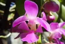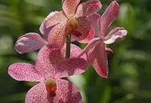 指甲兰是兰科指甲兰属植物。其茎粗壮;叶带状;总状花序疏生数朵花;萼片和花瓣淡白色,上部具紫红色;唇瓣侧裂片镰状长圆形;中裂片近宽卵形,前半部紫色,后半部白色带紫色斑点和条纹,先端凹缺,…全部>>