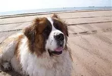 圣伯纳犬,别名巴里汉德,属于大型工作犬,肩高约65~90厘米,体重约50~90千克。圣伯纳犬身体强壮,被毛红褐色和白色相间,头圆而宽大。颈部强壮,胸宽深,背直。前肢长直,腕关节略前倾,后肢腿骨粗壮,…全部>>