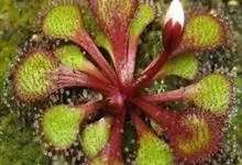 茅膏菜茅膏菜科茅膏菜属多年生草本植物,高32厘米。鳞茎状球茎紫色地上常直无毛,茎顶多分枝;基生叶密集成近一轮,叶片半月形;聚伞花序生于枝顶,白色或红色,种子椭圆形;花果期6-9月。茅膏菜为变种,…全部>>