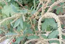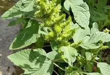 反枝苋是苋科苋属的一年生草本植物。株高达1米;茎密被柔毛;叶菱状卵形或椭圆状卵形,先端锐尖或尖凹,两面及边缘被柔毛,下面毛较密;穗状圆锥花序,顶生花穗较侧生者长;花被片长圆形或长圆状倒卵形,…全部>>
