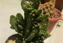 胭脂掌 Mill.)仙人掌科肉质灌木或小乔木,高2-4米,圆柱状主干直径达15-20厘米。分枝多数,椭圆形、长圆形、狭椭圆形至狭倒卵形,无毛,暗绿色至淡蓝绿色;小窠散生,不突出。叶钻形,绿色,早落。…全部>>