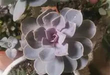 紫珍珠是景天科石莲花属的多年生肉质草本植物。植株中小型;叶片肉质,匙形,呈莲座状紧密排列;叶片粉紫色,叶缘呈粉白色,光照充足时颜色亮丽,不足时叶色会呈现深绿色或灰绿色,叶面光滑,被轻微白粉,…全部>>