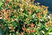 石楠 Kalkman),是蔷薇科石楠属的常绿乔木,高5~12米,株型紧凑,树冠圆球形。树枝为褐灰色;鳞片为褐色,没有毛;叶片革质,长椭圆至侧卵状椭圆形,有锯齿,新叶红色光亮。复伞房花序,白色小花,…全部>>