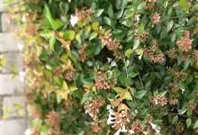 大花六道木,忍冬科六道木属半常绿矮生灌木。其幼枝为红褐色,有短柔毛;叶片倒卵形为墨绿色,有光泽;花粉钟形为白色;圆锥花序,开花繁茂;花期长,5~11月持续开花。…全部>>