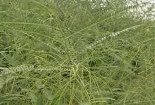田菁 Pers.)是豆科田菁属的一年生草本。株高2~3.5米;茎绿色或褐红色,微被白粉;小叶线状长圆形,先端钝或平截,两侧不对称;花枝疏生白色绢毛,与叶轴及花序轴均无皮刺;荚果细长圆柱形;种子有光泽,…全部>>