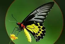 金裳凤蝶是凤蝶科、裳凤蝶属的动物。金裳凤蝶身体呈黑色,头、颈和胸侧有红毛,腹部有黑黄两色相间条纹,雄蝶前翅黑色,具黑天鹅绒光泽,各脉两侧灰白色,后翅金黄色,各室外缘有等腰三角形黑斑1枚,斑内侧有晕,…全部>>