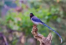 红嘴蓝鹊,别名山鹊、长尾鹊,是鸦科蓝鹊属的一种观赏性较强的大型鸣禽。该物种为体长54~65cm,头、颈、喉和胸黑色,头顶至后颈有一块白色至淡蓝白色或紫灰色块斑,其余上体紫蓝灰色或淡蓝灰褐色。尾长呈凸状,…全部>>
