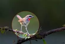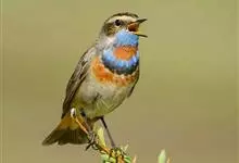 蓝点颏亦称“蓝喉歌鸲”,通称蓝靛颏儿。身体大小和麻雀相似,体长12-13厘米,体重17-18克。头部、上体主要为土褐色。眉纹白色。尾羽黑褐色,基部栗红色。颏部、喉部辉蓝色,下面有黑色横纹。下体白色。…全部>>