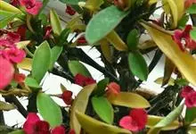 铁海棠为大戟科大戟属蔓生灌木植物;茎多分枝,具纵棱,呈旋转状;叶互生,通常集中于嫩枝上;每个花序基部边缘具微小的红色尖头;苞叶先端圆且具小尖头,无柄,上面鲜红色,下面淡红色;苞片丝状;子房光滑无毛,…全部>>