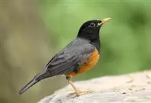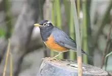 黑胸鸫属中型鸟类,体长20-30厘米。雄鸟整个头、颈、胸黑色,其余上体暗灰色,下体橙棕色,极为醒目。嘴、脚蜡黄色。雌鸟上体橄榄褐色,颏、喉白色,上胸橄榄褐色具黑色斑点,其余与雄鸟相似。…全部>>