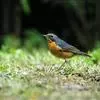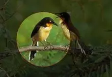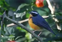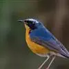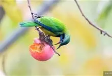 橙腹叶鹎体形大小和金额叶鹎相似,体长16~20厘米。额至后颈黄绿色,其余上体绿色,小覆羽亮钴蓝色,形成明显的肩斑。颏、喉、上胸黑色具钴蓝色髭纹,其余下体橙色。飞羽和尾羽雄鸟黑色、雌鸟绿色。…全部>>