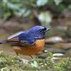 棕腹大仙鹟:体重24-28克,体长15-17厘米,是一种小型的色彩亮丽的鹟。雄鸟上体深蓝,下体棕色,脸黑,额、颈侧小块斑、翼角及腰部亮丽闪辉蓝色。与棕腹仙鹟易混淆,区别在色彩较暗。雌鸟灰褐,…全部>>