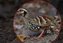褐胸山鹧鸪:雄鸟体长22厘米,体重310克;雌鸟体长23厘米,体重220-275克。前额皮黄白色,头顶橄榄褐色。眼部的裸皮鲜红色,有一条宽阔的皮黄白色眉纹一直延伸到颈的侧部。上体亮橄榄褐色,具黑色横斑。…全部>>