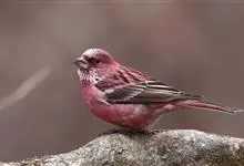 藏朱雀:全长约17-18厘米。雄鸟头部深红色具光辉,喉部暗红色具白色点斑;背部灰白色,各羽具玫瑰红色羽端,形成许多斑纹;腰部淡玫瑰红色;翅暗褐色,沾灰白,羽端沾玫瑰红或灰白色;尾暗棕色,端缘玫瑰红色…全部>>