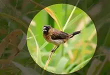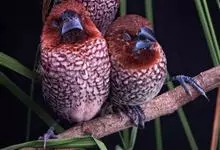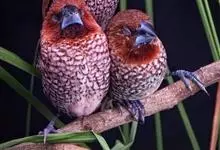 栗腹文鸟:小型鸟类,体长10-12厘米。嘴蓝灰色,基部粗厚,先端尖、呈圆锥状, 脚亦为蓝灰色,整个头、颈和上胸黑色,其余体羽栗色,或下胸和腹中央至尾下覆羽黑色。尾栗红色。全部>>