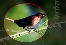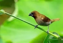 栗腹文鸟:小型鸟类,体长10-12厘米。嘴蓝灰色,基部粗厚,先端尖、呈圆锥状, 脚亦为蓝灰色,整个头、颈和上胸黑色,其余体羽栗色,或下胸和腹中央至尾下覆羽黑色。尾栗红色。全部>>