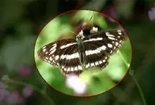 小环蛱蝶,Neptis sappho ,鳞翅目,蛱蝶科环蛱蝶属的一个物种。翅展45mm。翅面黑色,斑纹白色前翅中室有一白色纵纹,断续状;翅反面棕红色。分布于东北、河南、陕西、台湾、北京等。全部>>
