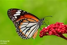 黑脉金斑蝶:翅阔8.6-12.4厘米。雄蝶较雌蝶为大。成年蝶颜色鲜艳,翅膀上有显眼的橙色及黑色斑纹,周围是宽阔的黑色边框,布有许多白色斑点。这种引人注目的着色是对捕食者的视觉警告,表示这个物种有毒;…全部>>