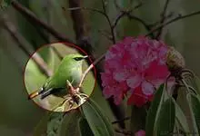 火尾绿鹛是莺科、绿鹛属小型鸟类,体长11-14厘米。上体绿色,头顶至枕具黑色鳞状斑,眼先和眼后黑色,眉纹黄绿色。两翅黑色具黄色和红色翅斑及白色端斑,极为醒目。中央一对尾羽绿色,外侧尾羽鲜红色。…全部>>