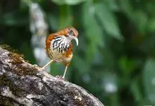 斑胸钩嘴鹛是雀形目、画眉科、钩嘴鹛属的鸟类。体型略大的钩嘴鹛。无浅色眉纹,脸颊棕色。甚似锈脸钩嘴鹛但胸部具浓密的黑色点斑或纵纹。栖息于低山地区及平原的林地灌丛间,在林间作短距离飞翔。…全部>>