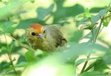 金头穗鹛小型鸟类,体长10~11厘米,是一种黄色小鸟。头顶金黄色有黑色纵纹,眼先黑色,在头、颊和耳羽金黄色的衬托下亦甚醒目。上体橄榄黄色,下体亮黄色,腹和两胁沾绿。…全部>>