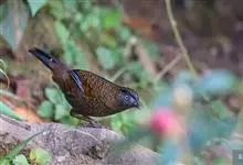 蓝翅噪鹛:噪鹛科、彩翼噪鹛属动物。中型鸟类,体长22-25厘米。上体棕橄榄褐色密被黑色鳞状斑,眼蓝白色,眼上有一长而宽阔的黑色眉纹,从眼先直到颈侧。下体棕褐色被黑色鳞状斑;尾上和尾上覆羽栗色,…全部>>