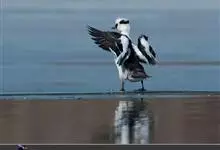 斑头秋沙鸭,是鸭科、斑头秋沙鸭属鸟类。雄鸟眼先和眼周黑色,成块斑状;头部其余部分全为白色。颈白色;背黑色,上背最前处的白羽具有黑端,相连而成两条半圆环狭带。下体白色,体侧羽毛具黑褐色波状细纹。…全部>>
