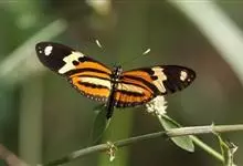 虎斑蝶,Danaus genutia ,是斑蝶属的一种,常见于湿地公园内。雄性虎斑蝶经常伏于吊裙草 上吸食汁液,以制造吸引异性的香气。虎斑蝶翅膀腹面鲜橙色,翅脉和翅边缘黑色,边缘上有两行小白点,…全部>>