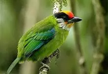 金喉拟啄木鸟,是须鴷科、拟啄木鸟属的鸟类。金喉拟啄木鸟为小型鸟类,体长19-24厘米。额深红色,头顶金黄色,后枕具一大块深红色斑,耳羽和头侧银灰色,上体草绿色,颏和上喉金黄色,下喉淡银灰色,…全部>>