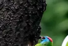 蓝喉拟啄木鸟,是须鴷科、拟啄木鸟属的鸟类。蓝喉拟啄木鸟为小型鸟类,体长20-23厘米。前额至头顶鲜红色,其上有一宽阔的黑色横带,将此红色分为前后二块;头侧、颏、喉蓝色,下喉两侧各具一红色点斑。…全部>>