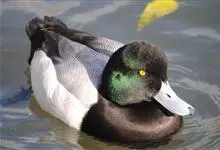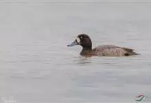 斑背潜鸭体长42-47厘米,翼展68-75厘米,体重750-1350克,是中等的体矮型鸭。雄鸟体比凤头潜鸭长,背灰,无羽冠。雌鸟与雌凤头潜鸭区别在于嘴基有一宽白色环。…全部>>