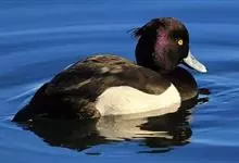 斑背潜鸭体长42-47厘米,翼展68-75厘米,体重750-1350克,是中等的体矮型鸭。雄鸟体比凤头潜鸭长,背灰,无羽冠。雌鸟与雌凤头潜鸭区别在于嘴基有一宽白色环。…全部>>