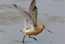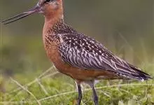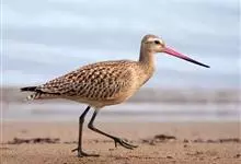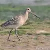 斑尾塍鹬,是鸻形目鹬科塍鹬属鸟类。其体形较大,体长约40厘米;喙较长,基部肉红色、尖端黑色而略向上翘;贯眼纹细而深,眉纹白色明显;雌鸟体型比雄鸟大,喙部也明显更长。非繁殖期雌雄鸟羽色相似,…全部>>