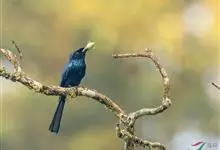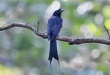 发冠卷尾是中型鸟类,体长28-35厘米。通体绒黑色缀蓝绿色金属光泽,额部具发丝状羽冠,外侧尾羽末端向上卷曲。栖息于海拔1500米以下的低山丘陵和山脚沟谷地带,多在常绿阔叶林、次生林或人工松林中活动。…全部>>