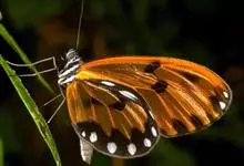 虎斑蝶,Danaus genutia ,是斑蝶属的一种,常见于湿地公园内。雄性虎斑蝶经常伏于吊裙草 上吸食汁液,以制造吸引异性的香气。虎斑蝶翅膀腹面鲜橙色,翅脉和翅边缘黑色,边缘上有两行小白点,…全部>>