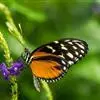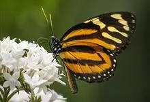 黑脉金斑蝶:翅阔8.6-12.4厘米。雄蝶较雌蝶为大。成年蝶颜色鲜艳,翅膀上有显眼的橙色及黑色斑纹,周围是宽阔的黑色边框,布有许多白色斑点。这种引人注目的着色是对捕食者的视觉警告,表示这个物种有毒;…全部>>
