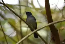 发冠卷尾是中型鸟类,体长28-35厘米。通体绒黑色缀蓝绿色金属光泽,额部具发丝状羽冠,外侧尾羽末端向上卷曲。栖息于海拔1500米以下的低山丘陵和山脚沟谷地带,多在常绿阔叶林、次生林或人工松林中活动。…全部>>
