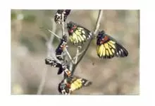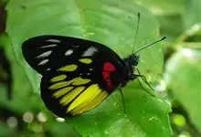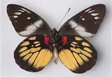 报喜斑粉蝶是粉蝶科斑粉蝶属的一种动物,又名红肩粉蝶、藤粉蝶等。幼虫群集性很强,从同一卵块孵化出的幼虫,幼龄期全部群集在一起取食,高龄幼虫常分散成小群。幼虫群集危害叶片,造成秃枝,严重者可将树吃成光杆,…全部>>