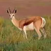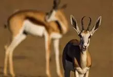 阿拉伯沙瞪羚:是偶蹄目、牛科、瞪羚属的食草动物。头尾长97厘米,身高约55-60厘米。雄性体重约为22千克,雌性性体重为18千克。雌雄都有犄角,雄性长达27厘米,雌性15厘米。体型较小。腿细长,…全部>>
