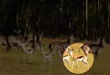 跳羚是哺乳纲、偶蹄目、牛科哺乳动物,属于中型的羚羊。四肢细长;背面毛色黄褐,臀部及其背面、腹部、四肢内侧均为白色,在身体两侧背腹之间 有一红褐色条带;背部中央有1条纵向的由皮肤下凹而形成的褶皱,…全部>>