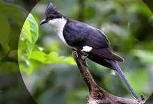 斑翅凤头鹃: 成鸟具羽冠,上体及头侧、翅、尾等黑色,具铁绿色亮辉,尾羽端部具白斑,两侧者形宽,中央者较狭;下体白色、淡灰白或略带棕黄色。虹膜褐至红褐色;嘴黑色;脚灰蓝黑色。…全部>>