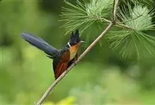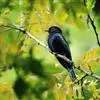 乌鹃:是杜鹃科、乌鹃属的小型鸟类,体长23-28厘米,通体黑色,尾呈浅叉状,尾下覆羽和外侧尾羽具白色横斑,在黑色的尾部极为醒目。下体黑色,微带蓝色或辉绿色。虹膜褐色或绯红色,嘴黑色,脚灰蓝色。…全部>>