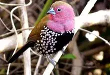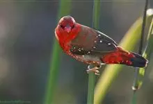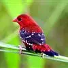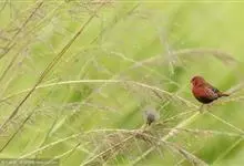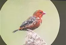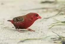 红梅花雀小型鸟类,体长9-10厘米。雄鸟通体朱红色,背、肩、胸等满布白色小斑点,两翅和尾黑褐色均具白色端斑,嘴红色,脚蜡黄色。雌鸟上体淡褐色或赭褐色,翅上中覆羽、大覆羽和内侧飞羽末端具白色斑点,…全部>>