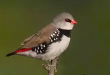 斑胁火尾雀,是梅花雀科的一种,为澳大利亚的特有种。全球活动范围约为1,000,000平方千米。…全部>>